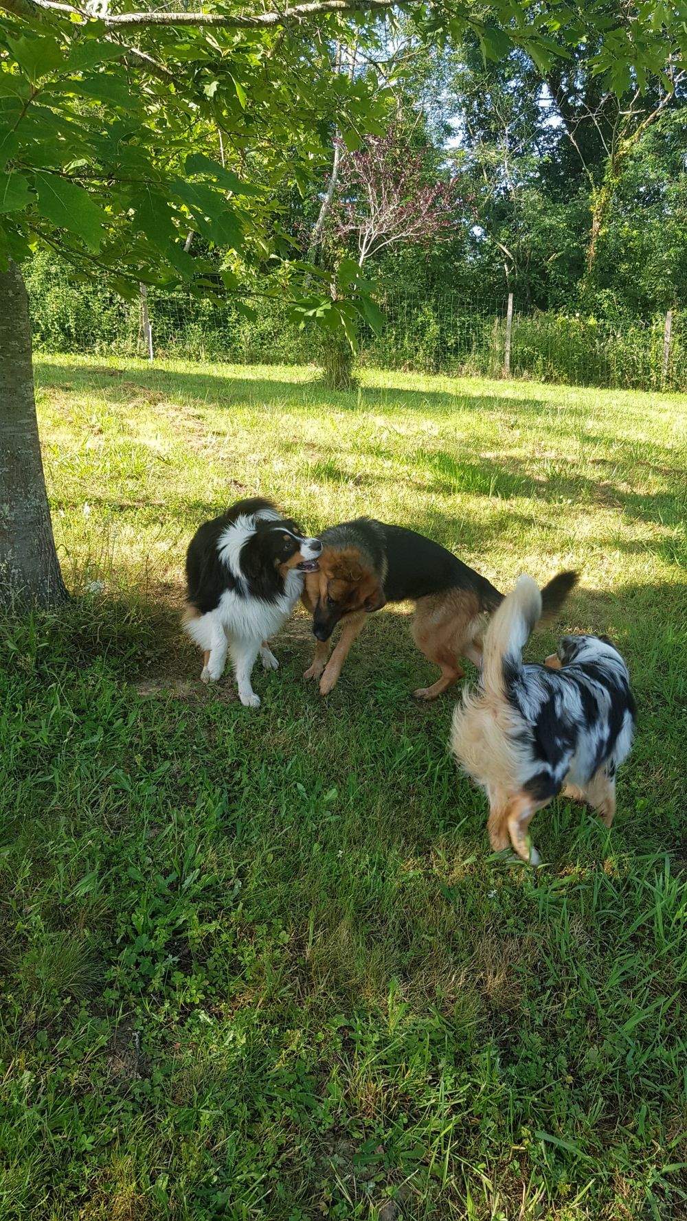 La pension est une pension familiale ou la sociabilité est essentielle. La majeur partie du temps selon les affinités les chiens seront ensemble.